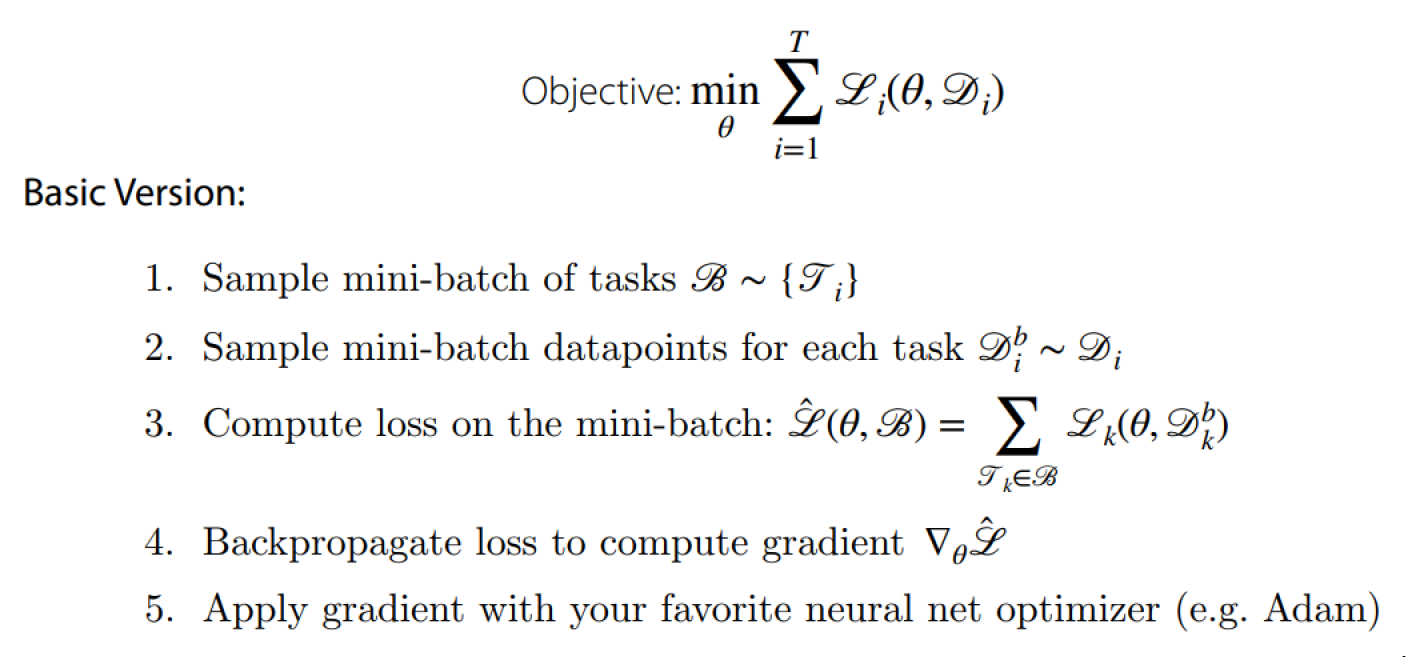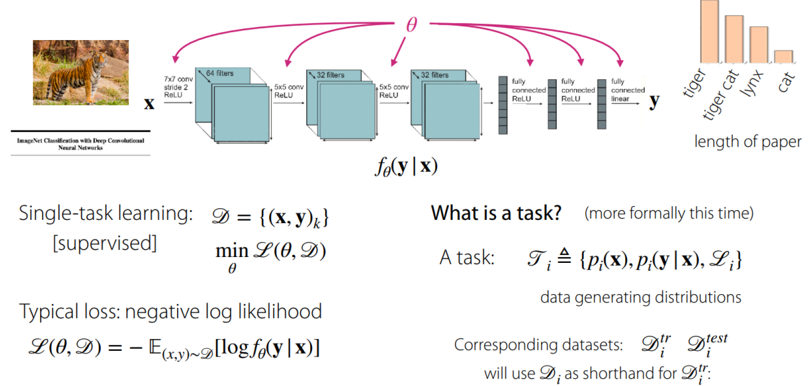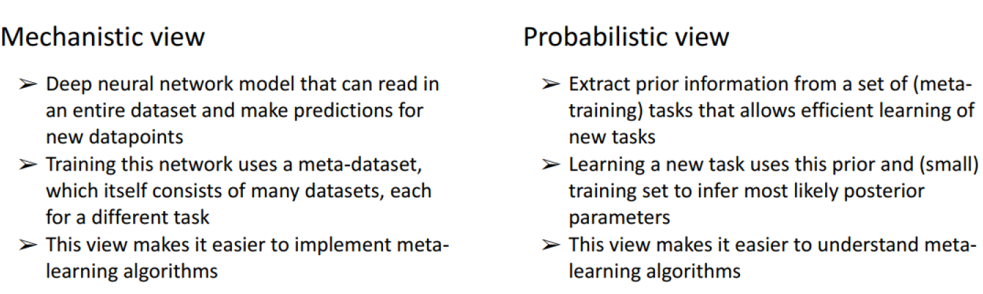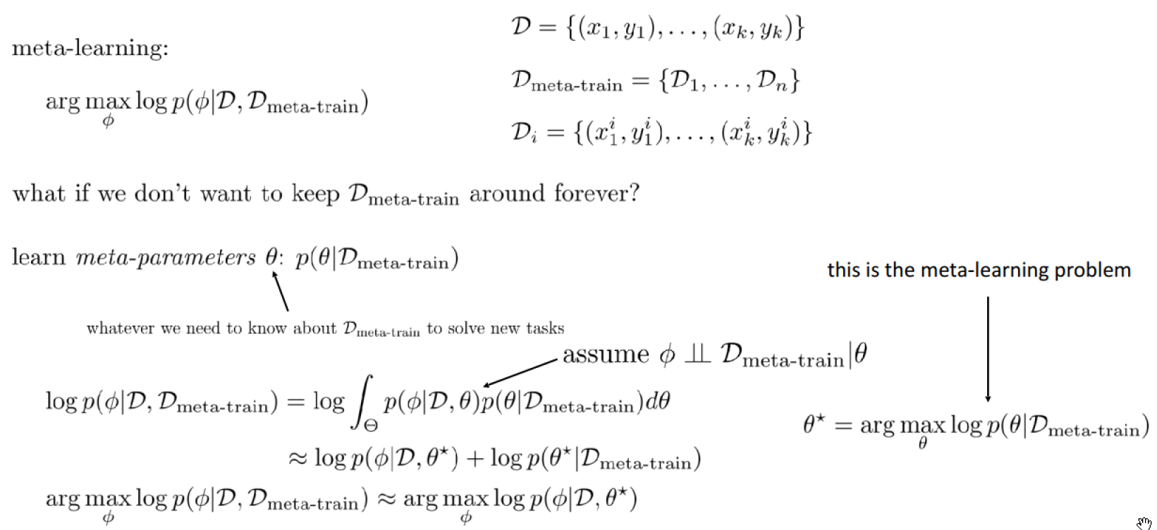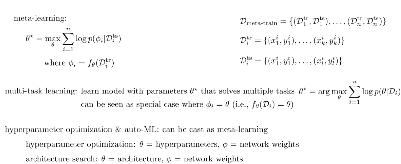 The multi-task learning problem: Learn all of the tasks more quickly or more proficiently than learning them independently. The meta-learning problem: Given data/experience on previous tasks, learn a new task more quickly and/or more proficiently.