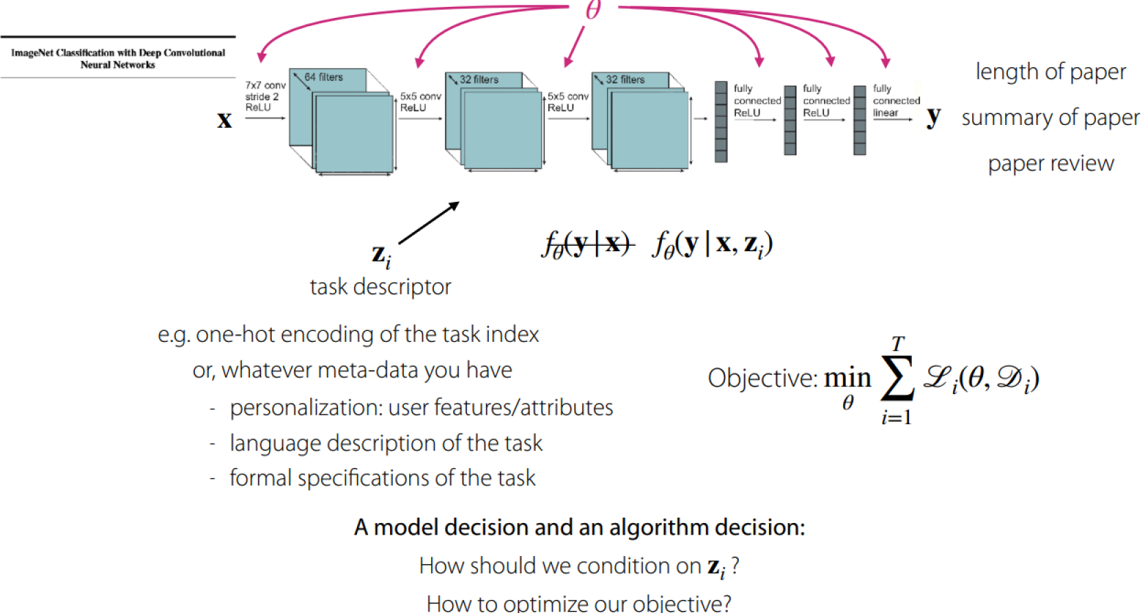 If is the task index, one way to solve the problem is conditioning on the task like below: