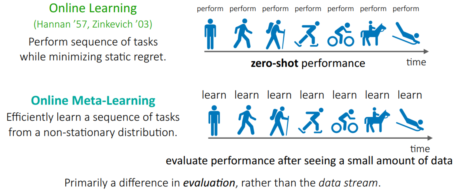 Meta-Learning: Given i.i.d. task distribution, learn a new task efficiently, learn to learn tasks.