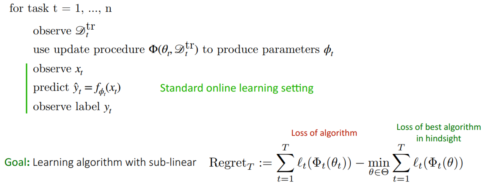 $$ Regret_T := \sum_{1}^{T}L_t(\theta_t) - \min_{\theta}\sum_{1}^{T}L_t(\theta_{best}) $$
